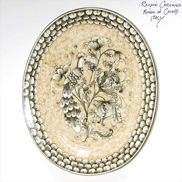 Oval platter 41x50 with Pavono Nico sabbia e argilla - Peacock Nico Sand and Clay